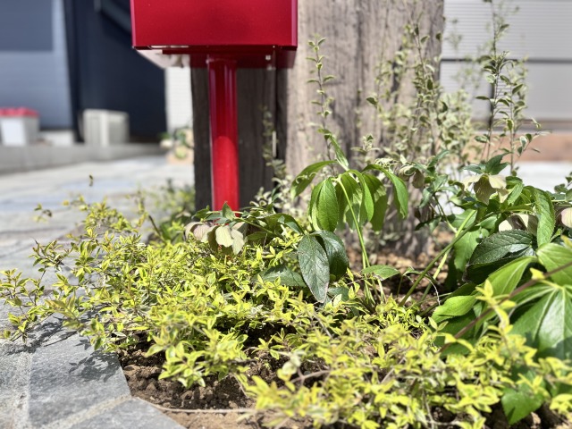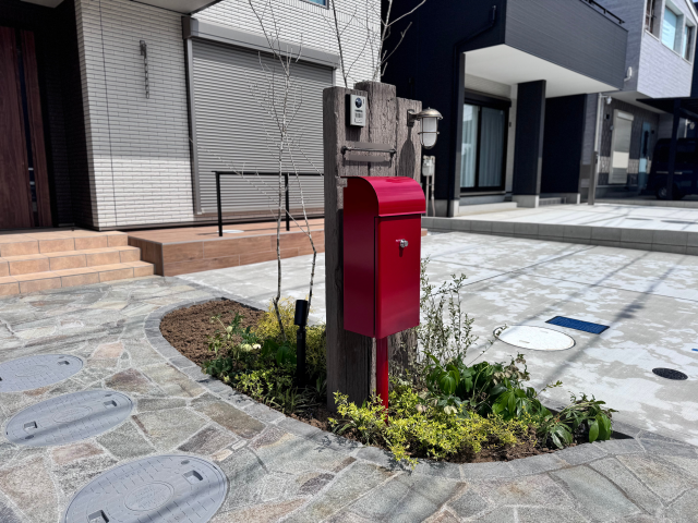 赤いポストがかわいい❤シンプルナチュラル外構