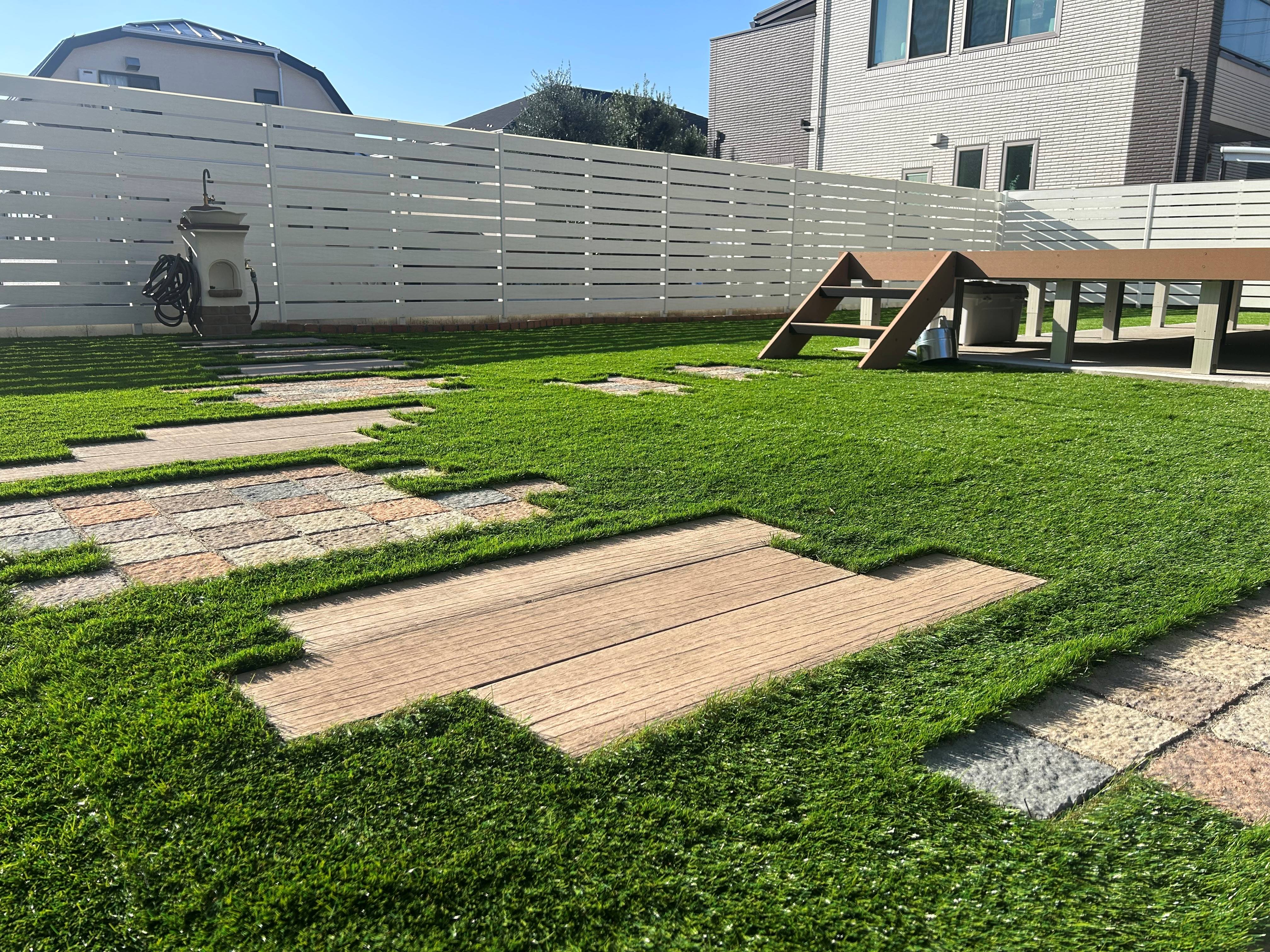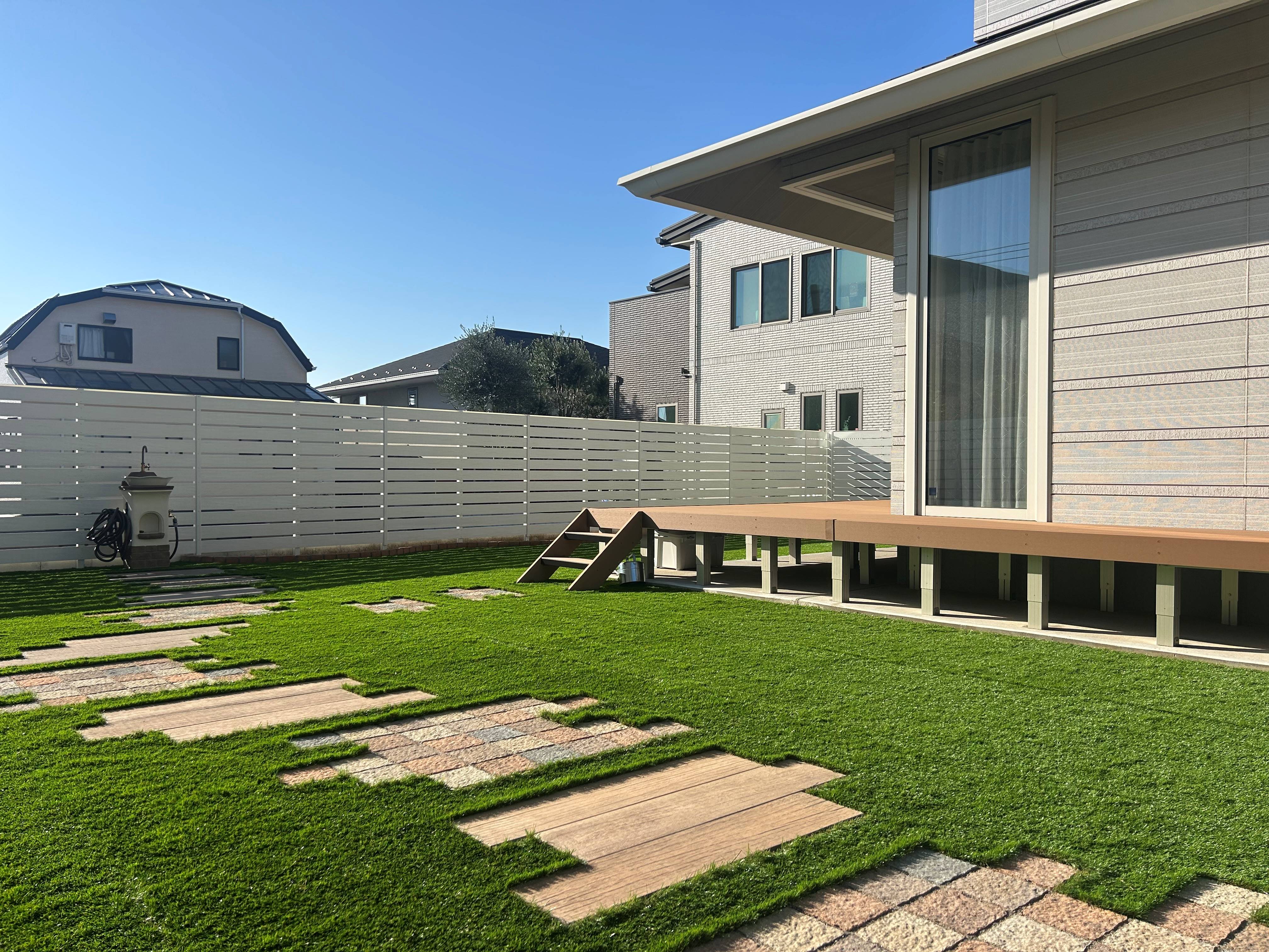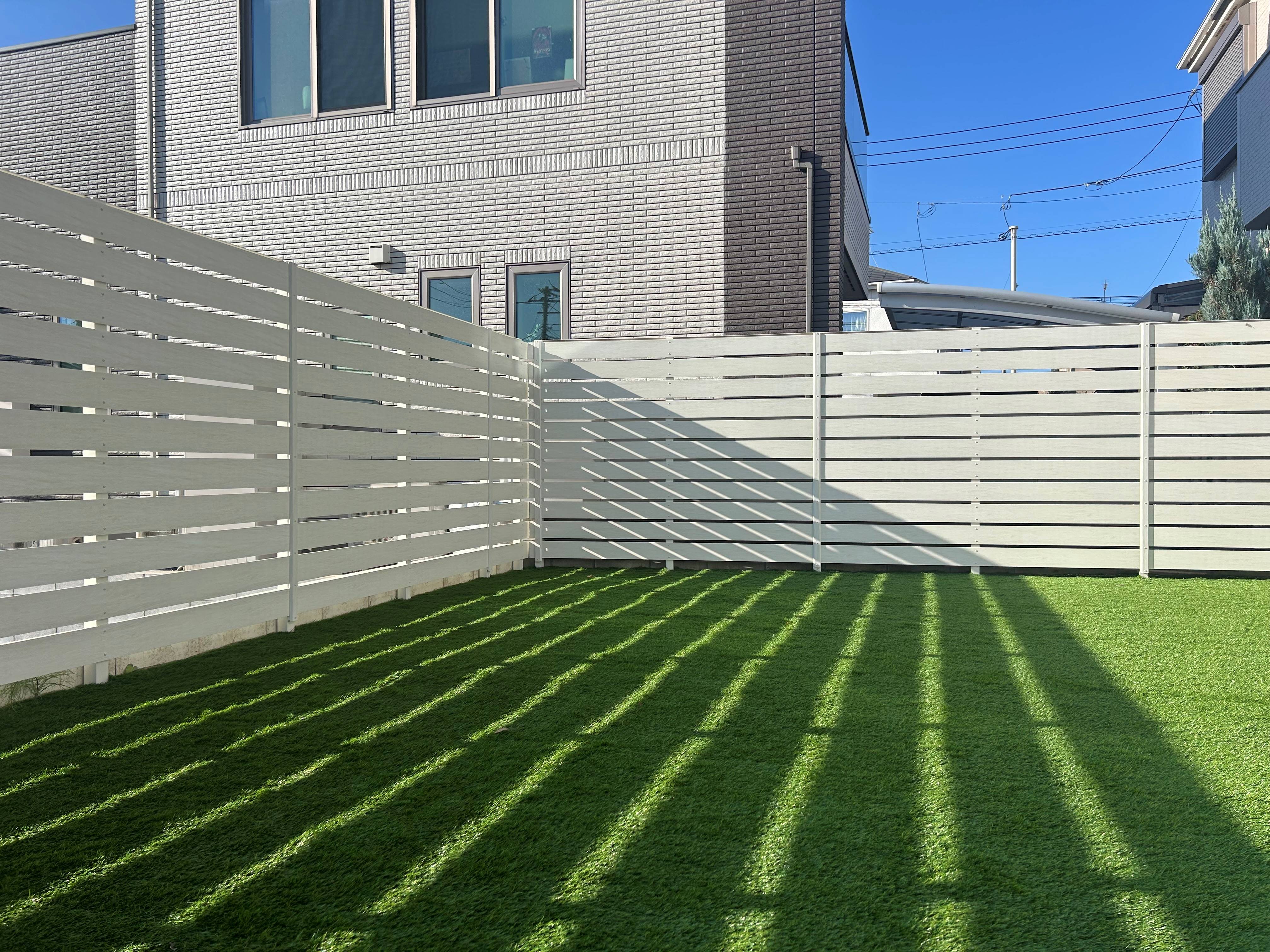 お庭の外周にはぐるっと目隠しフェンスを設置し、プライベート空間にしました。