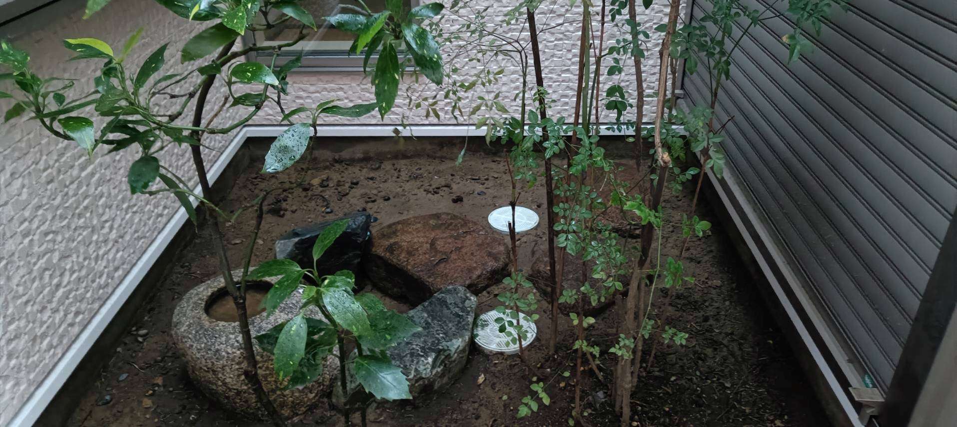 砂利も敷きなおし、きれいな坪庭に元通りです♪