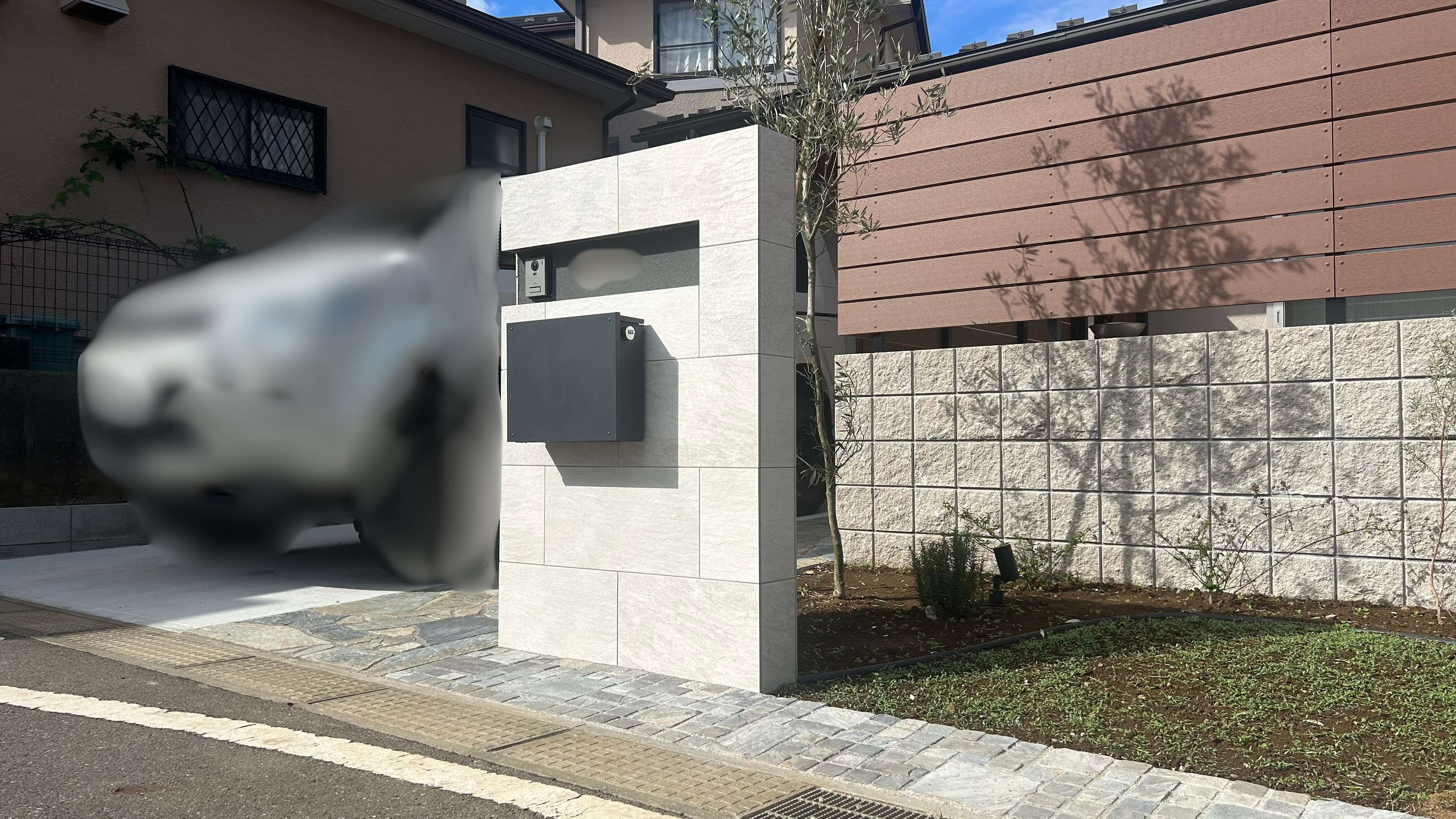 門柱には『カリラ/D21』を貼り、シンプルでスタイリッシュな門柱になりました。