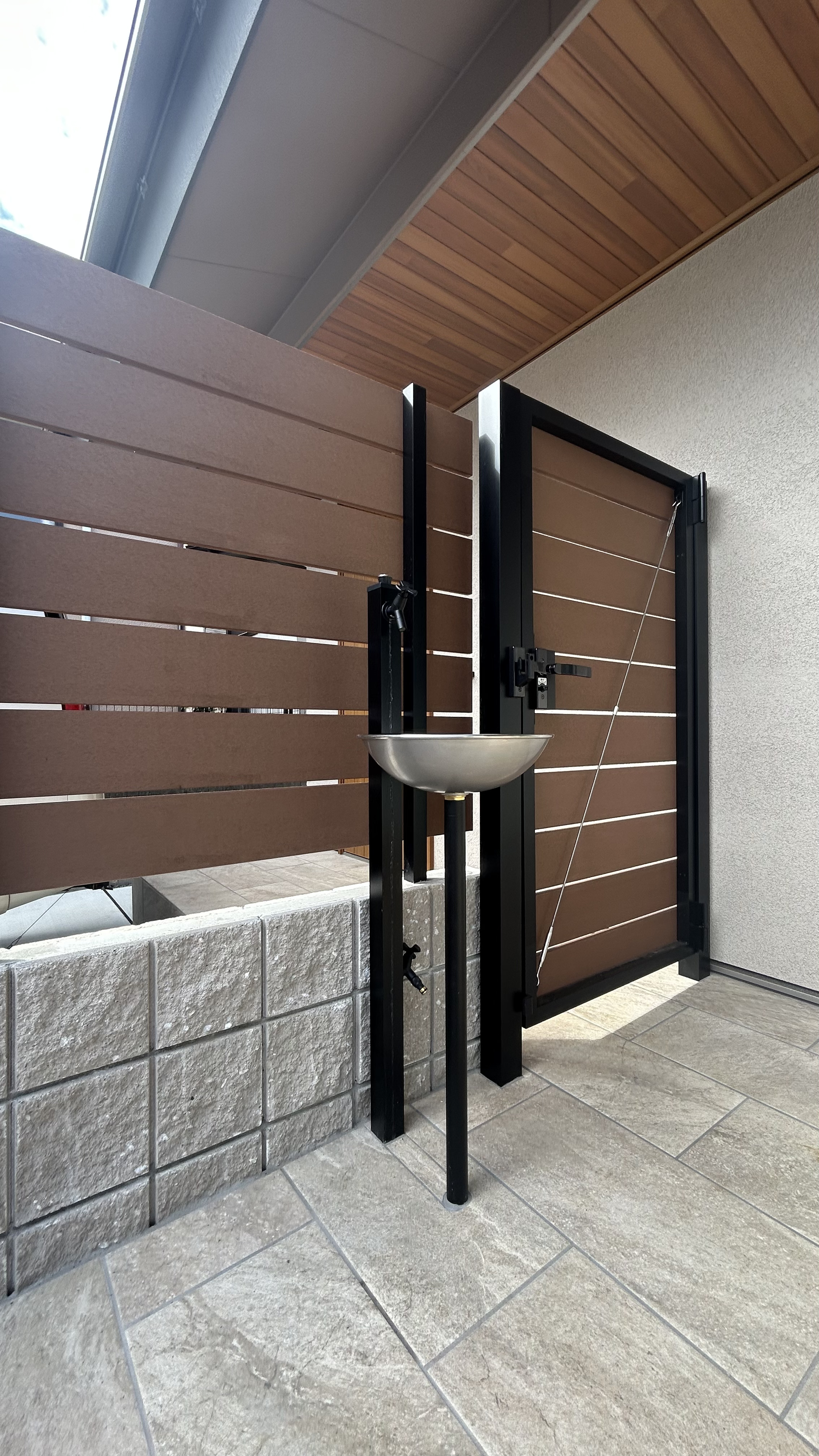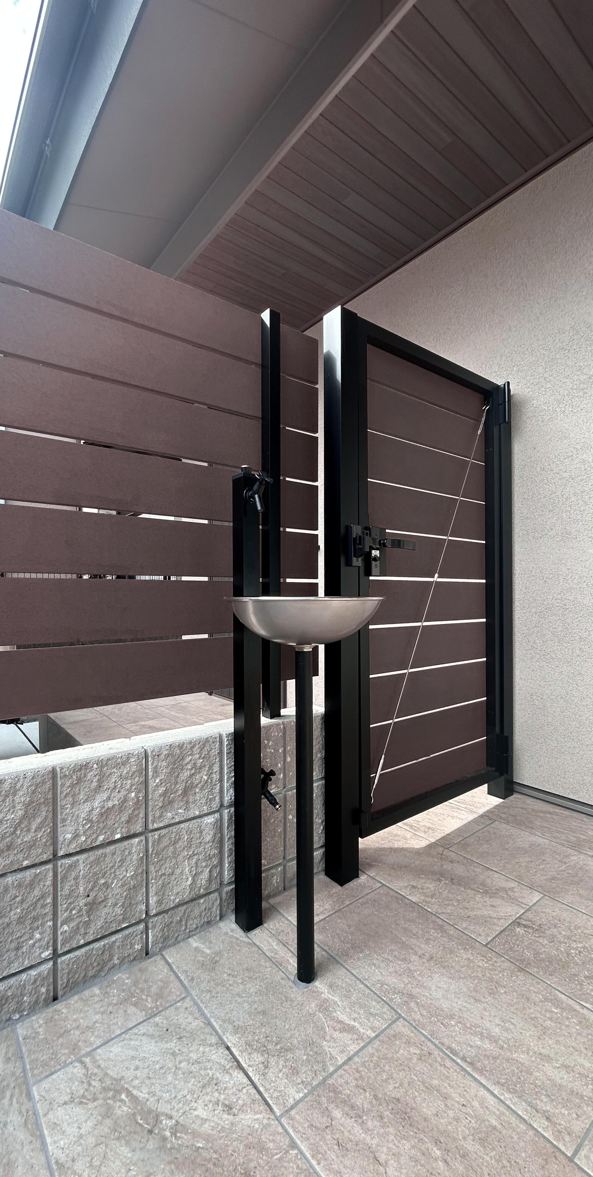 タイルテラスには使い勝手のよい立水栓も設置しました。